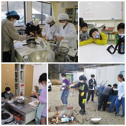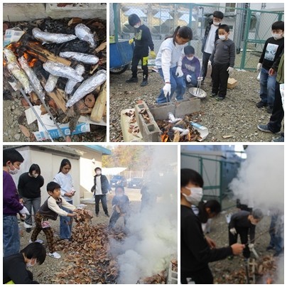 もみじ組の畑で採れたお芋で「焼き芋」「蒸し芋」を作りました。燃料の木材や落ち葉は、学校に山のようにあります。火加減が心配でしたが、担任の先生が小まめに箸で芋の固さを確認しながら焼きました。子どもの頃に放映していたサザエさんでは、この時期は落ち葉を集めて庭先で焼き芋・・・が必ず放映されていたことを思い出します。今日は、消防にも届け出を出しているので、公認の「焚火」ができました。焚火の経験は、現代の子どもたちには貴重です。