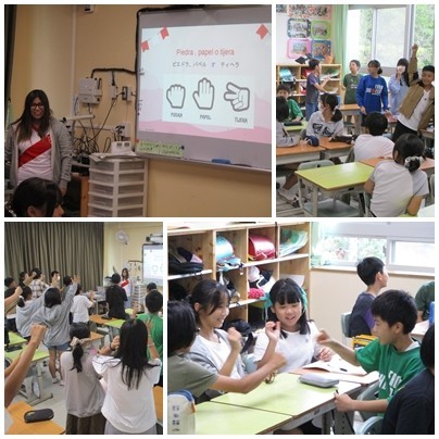 10月14日(火)6年生 異文化交流 公開日 2025/10/15 更新日 2025/10/15 日々のページ ペルー出身の大学生に来ていただいて、異文化交流しました。ジャンケンは世界共通なのでしょうか・・・?ぺルーでは、「ピエドラ、パペル オ ティヘラ」と言うそうです。楽しくジャンケンする6年生を見ていると、シャンケンで楽しむ子供も世界共通?と思いました。 いいね(0)