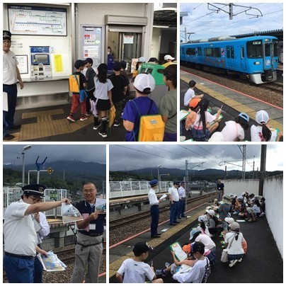 1・2時間目に、生活科の「校区探検」で、山口駅と山口八幡社・北憩いの家に行きました。山口駅は、愛知環状鉄道の駅員さんから駅や愛知環状鉄道のことを教わりました。北憩いの家の2階は郷土資料館になっています。縄文時代の遺物から戦時中の物まで、山口の歴史がぎっしりつまっています。資料館の入り口には、伝統芸能である「棒の手」が展示されています。ちょうど10月12日に「警護祭」が行われたところでした。