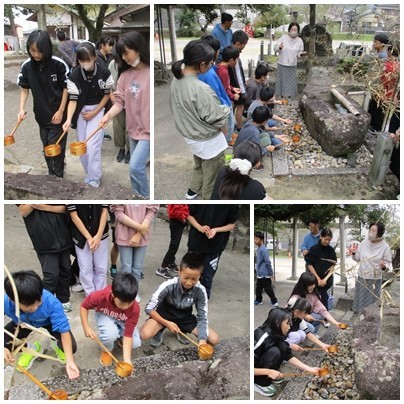 水・木・金曜日の三日間連続で、大変お世話になりました。茶道の先生、社協や自治会の皆様など、本当にありがとうございました。地元の和菓子屋さんにはアレルギー対応もしていただいた特別な和菓子も作っていただきました。幡山東の子どもたちを地域の皆様と一緒に育んでいる実感を感じることができました。これからも幡山東小の子どもたちがお世話になることかと思います。どうぞよろしくお願いいたします。来週は、4年生が「棒の手」を教わります。