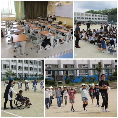 4月17日(金)2時間目、地震が発生したことを想定した避難訓練を行いました。緊急地震速とともに、まずはシェイクアウトしました。教職員が声の連携で被害や避難経路の確認をしてから避難しました。放送が使える場合は放送で一斉に避難指示した方が確実ですが、避難する必要があるような大地震が起きたら、停電で放送は使えないと想定しています。訓練では、職員が声のリレーで伝達することを意識しました。なお、幡山東小は、東側の斜面が土砂災害の危険があるため、4月から3月までの1年間、土砂災害防止のための工事をしています。運動場が一部駐車場になっています。車の出入りにお気を付けください。