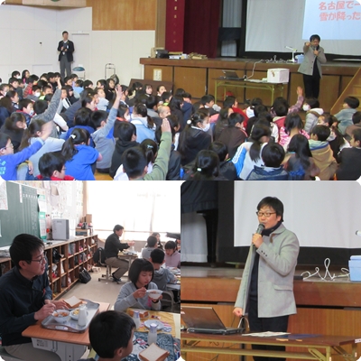 4時間目には、4〜6年生を対象に、NHKの夕方の番組「まるっと!」キャスターの気象予報士の寺尾直樹さんが講師となり、「お天気の不思議」という内容の授業を行っていただきました。