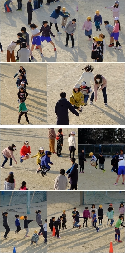 なわとび集会≪大波小波,ぐるりと・・・≫ 公開日 2019/01/17 更新日 2019/01/17 日々のページ なわとび集会 二日目です。 今日は「おおなみ こなみ,ぐりりとまわって,ねこのめ」をしました。繰り返すうちにうまくなっていきます。 いいね(0)