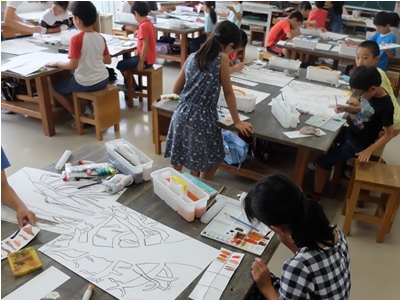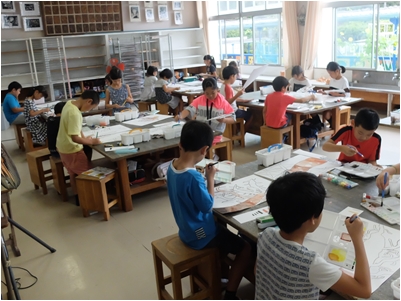 3年生≪お話の絵≫ 公開日 2019/09/13 更新日 2019/09/13 3年生 先日紹介したクラスと別のクラスが,モチモチの木の彩色に取組んでいました。さまざまな幹ができあがります。 いいね(0)