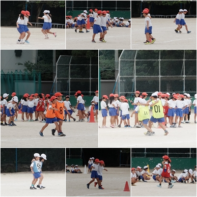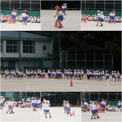 2時間目,2年生が2人3脚の練習です。ペアとのリズムが合うようになってきました。