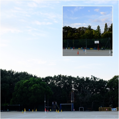 運動場には杭が打たれ,運動会の準備が進んでいます。