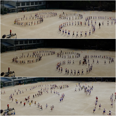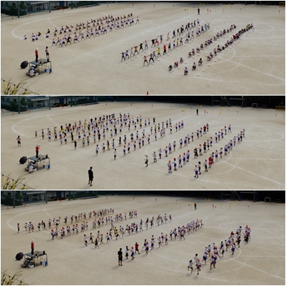 3・4年生の最終練習です。当日は黒と赤の法被(はっぴ)を着て演技します。当日をお楽しみに・・・。
