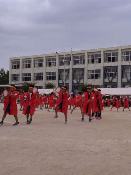 運動会その3『3・4年 幡東エイサー 島人ぬ宝』【PTA広報部より】 公開日 2019/09/30 更新日 2019/09/30 PTA広報部 エイサー太鼓を鳴らし、元気のいい掛け声をかけながらリズムに乗って踊りました。赤と黒の衣装をまとい、大きな動作で踊る姿はとてもかっこ良かったです。 いいね(0)