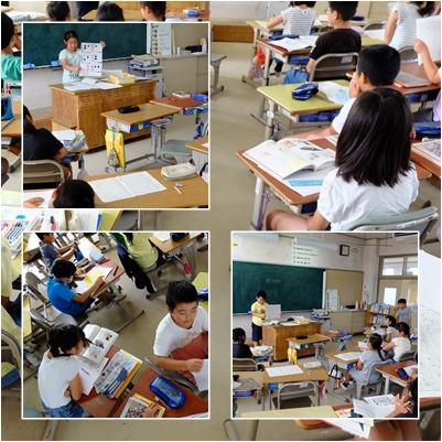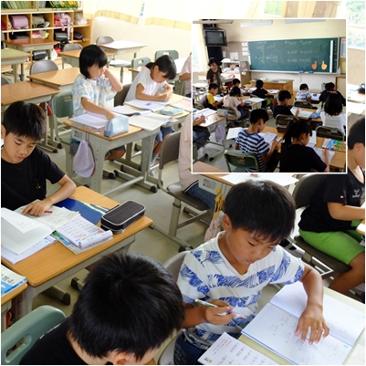 1組は割り算の筆算,2組は調べ学習,3組は発表の準備をしています。