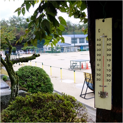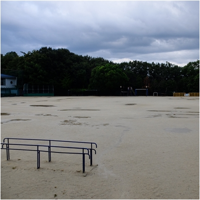 気温が20度を下回りました。未明に激しい雨が降りました。砂埃がひどかった運動場,いたるところに水たまりができています。