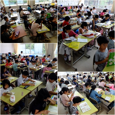 どんぐり読書週間二日目,授業開始前の読書の様子です。