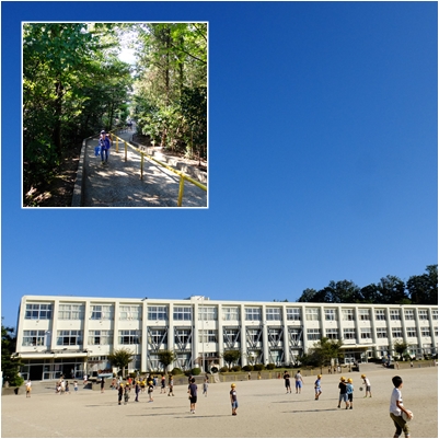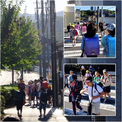 まぶしい秋に日差しを浴びて登校です。