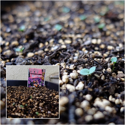 春花壇を彩るビオラがいくつも芽を出しました。