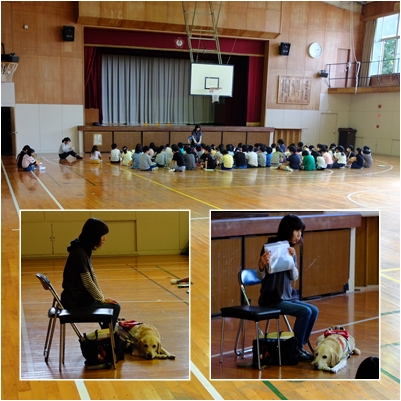 午後,盲導犬と暮らしてみえる方を講師にお招きし,3年生が福祉実践教室を受けました。