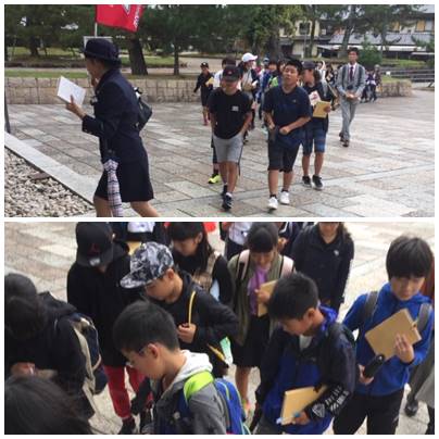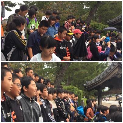 鯛石を踏みながら、見学開始。全員で記念写真をとりました。