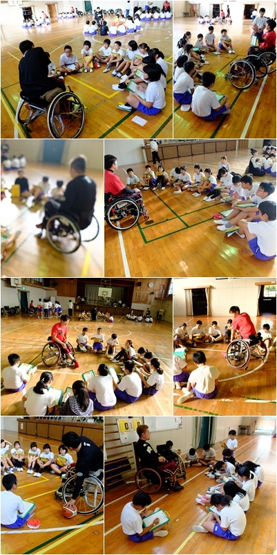 車イスバスケット体験≪6年生≫ パート2 公開日 2019/10/30 更新日 2019/10/30 6年生 実際に車いすバスケットを体験したのち,グループに分かれて選手の方からお話をうかがいました。 貴重な体験ありがとうございました。 いいね(0)