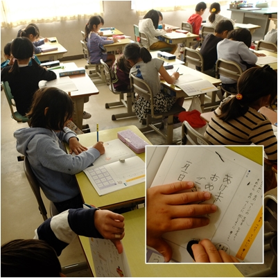2年生≪書写の授業:年賀状≫ 公開日 2019/11/20 更新日 2019/11/20 2年生 2年生の書写の授業です。 もう40日ほどでお正月です。「あけましておめでとうございます」,年賀状の書き方のついて学んでいます。 いいね(0)