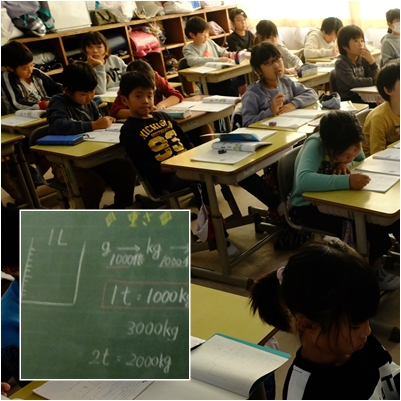 重さについての学習が進みます。単位換算,計算の方法について学習していました。