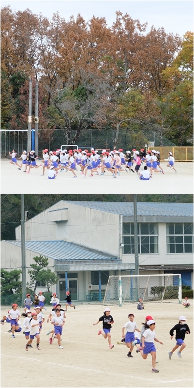 3時間目,3年生が持久走大会の試走です。校舎裏のロータリーを回るコースを始めて走ります。