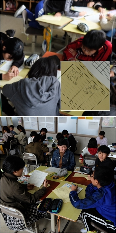 算数の授業,少人数に分かれて資料のまとめ方について学習が進んでいます。