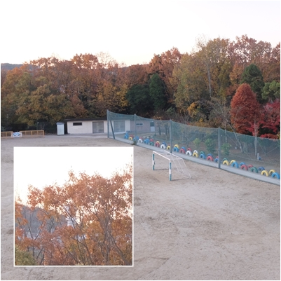 落葉がまた進みました。遠くの景色が木々のすき間からのぞくようになってきました。