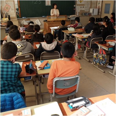 4年2組のそろばん教室の一こまです。