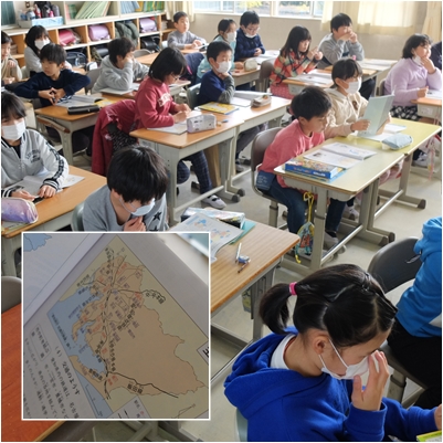 4年生は愛知県について学んでいます。 今日は県内の鉄道網について学んでいました。