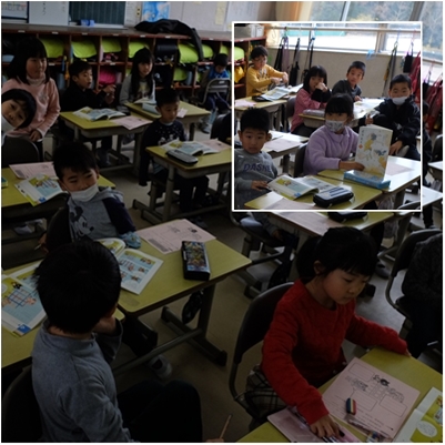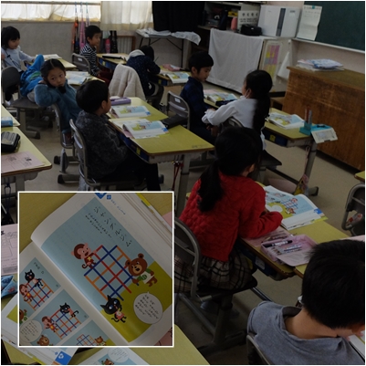 教科書にはジャングルジムでの遊ぶ動物たち,「ちがうところであそんで」のひと言で,トラブルが起きます。どうしたらみんなで楽しく遊べるかを考える授業です。