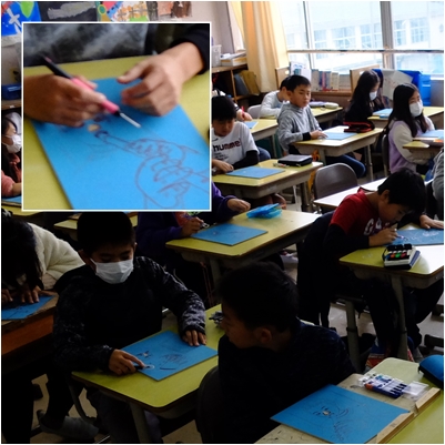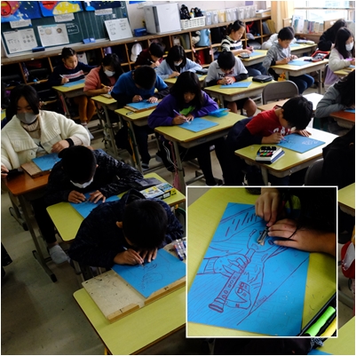 慎重に幅5ミリ弱の鼻のラインを慎重に彫り進めています。