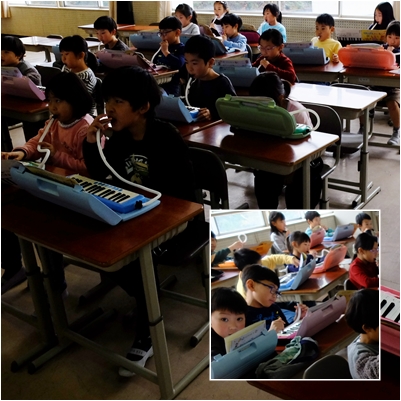 2年生がけん盤ハーモニカの演奏です。高いドが続く曲をリズムをとりながら演奏していました。