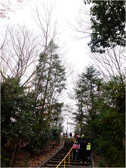 階段を囲む森はすっかり冬木立です。 寒くなると足早になります。登校も早かったです。