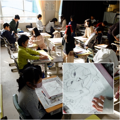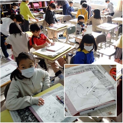 版画の下絵を石膏板に写しとります。迫力のあるネコがいっぱいいました。