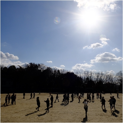 2時間目あとの休み時間 公開日 2019/12/20 更新日 2019/12/20 日々のページ 冬休み前,友だちと学校で遊ぶのも今日と月曜日の二日です。 陽射しがとてもあたたかです。たくさんの子が外遊びを楽しんでいました。 いいね(0)