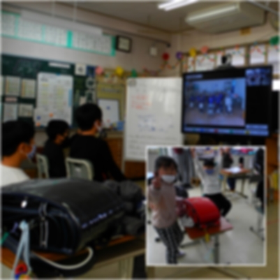 オンラインで学校をつなぎ,もみじ組が幡山中特別支援学級と交流会を行いました。モニターには懐かしい顔を見えます。手を振り合っていました。短い時間ですが楽しいひと時を過ごしました。