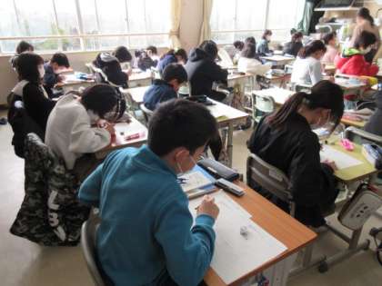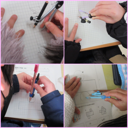 5年生の算数です。図形の問題を解いていました。定規やコンパスを使っての作図は、集中力が必要ですね。