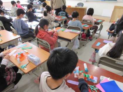 「体育館の壁に飾るんだよ」と教えてくれました。誰かのために、何かを作る喜びを味わってくれているようです。