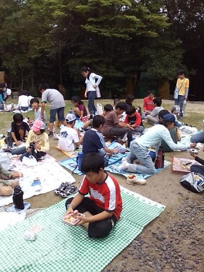 ごみの分別について話を聞いてから、班ごとに食べます。