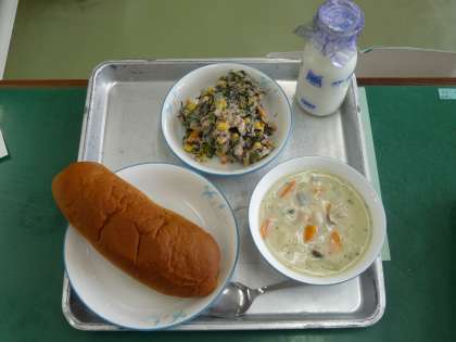 7月7日(火) 「今日の給食」 公開日 2009/07/07 更新日 2009/07/07 日々のページ 今日の給食のメニューは。。。 ・クロロールパン ・牛乳 ・チキンチャウダー ・ひじきサラダ です。 いいね(0)