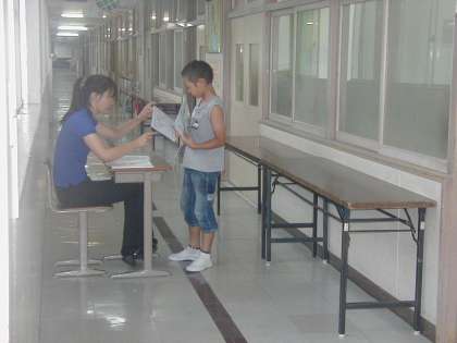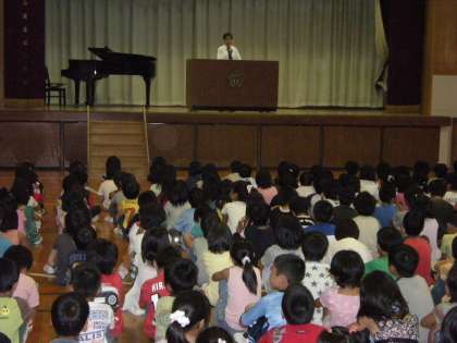 式の中では、「○○君の小六夏物語」という題で自分の小学校の時のことを子どもたちに話しました。「長い夏休みだからできる」ということを自分で決め、がんばる心・強い心を持ってやりきってほしいと思います。
