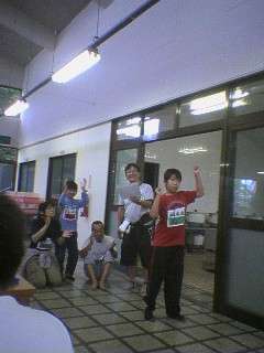 31回目のあすなろキャンプが始まります。子どもと先生達総勢で210名です。まずは、みんなでお楽しみ会です。幡東小の二人は笛の演奏と踊りを披露しました。外は雨ですが、会場は盛り上がり、楽しい雰囲気に包まれています。
