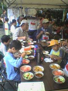 みんなで役割分担してカレーライスを作りました。カボチャやナスを入れた夏野菜カレーです。美味しくでき、中学生は三杯もおかわりをしていました。食べ終わった後の片付けをどの子も本当にちゃんとやっており、感心しました。
