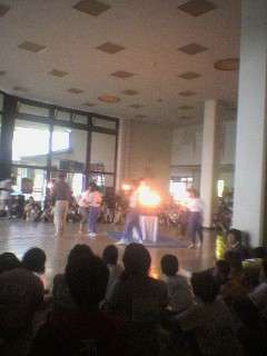 キャンプファイヤーは雨天のために中止となり、室内でキャンドルサービスをすることになりました。司会の子ども、出し物をする子ども、周りの子ども、みんなで楽しもうと力を合わせ、とても良い会となりました。最後に、先生たちの音楽と踊り付きの楽しいトーチトワリングが披露されました。あすなろキャンプは、いつまでも心に残る夏の思い出となることでしょう。