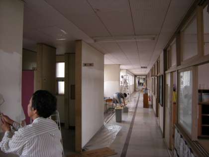 用務員さんの共同作業研修で3階廊下がきれいに! 公開日 2009/07/30 更新日 2009/07/30 日々のページ 瀬戸市の学校用務員さんの共同研修会で本校の3階廊下のペンキ塗りをしていただきました。8名の方が手分けをしてテープ貼りやローラー塗り、刷毛塗りなど分担して作業しました。見違えるようにきれいになりました。 いいね(0)