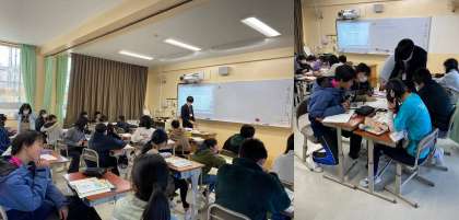 「もしこうだったらと考えて、条件に当てはまる場合を考えよう」。グループに分かれて、お互いの意見を出し合い、先生にヒントをもらいながら問題を解いていました。発表の時に解き方も説明できるようにと先生に言われ、答えは出ていても説明の仕方についてみんな苦戦してました。保護者にも問題が渡され、一緒に解いている姿も見られました。