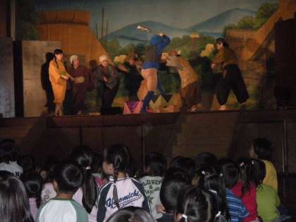 低学年は,よく知っている『泣いた赤おに』を観劇しました。笑いあり、涙ありの演技で子どもたちはくぎづけで引き込まれていきました。