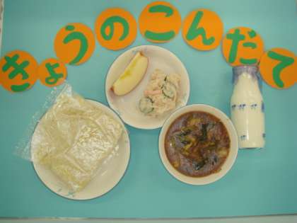 ビビンバ、てりかけ、とりめしと好きなメニューや、サラダ系の苦手な子が多いメニュー。ラーメンの話もでました。