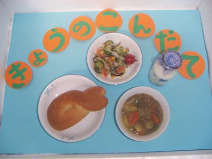 今日は、1年生の国語の教材にある「サラダでげんき」に出てくるサラダでした。