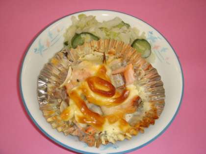 「鮭のマヨネーズ焼き」は、アルミカップでひとつひとつ手作りです。幡山東小学校の子どもたちと先生たち、合わせて420個!順番にオーブンで焼いていきました。