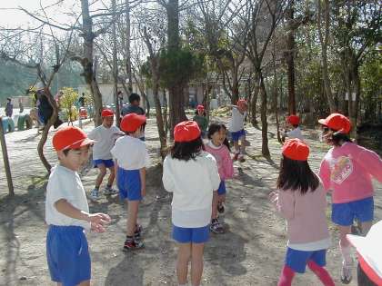 18日の30分放課、うららかな春の光に包まれて、運動場は子どもたちの活気で満ちています。
