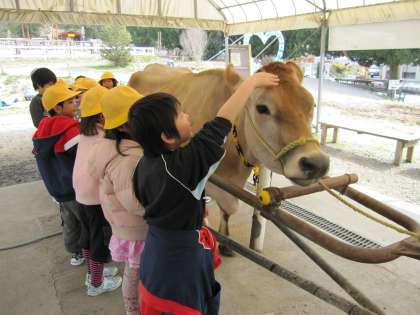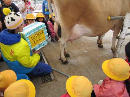 飼育員のトミお姉さんからは、乳のしぼり方や牛乳の話だけではなく、動物への接し方や出産の様子や親子の関係などのお話を聞くことができました。